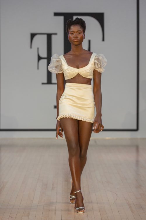 I would describe my design style as minimal but contrasting it with bold silhouettes. I hope to empower each woman through my pieces with the emphasis on setting your own trends with no boundaries on the countless ways to style each piece.